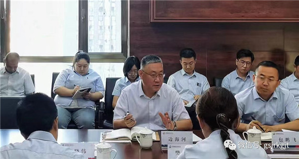 在甘肅再擔(dān)保,邊海河聽取了甘肅再擔(dān)保黨委關(guān)于落實(shí)集團(tuán)黨委“四抓四強(qiáng)化”部署安排、黨建融入生產(chǎn)經(jīng)營典型創(chuàng)建、企業(yè)文化建設(shè)、全面從嚴(yán)治黨和黨風(fēng)廉政建設(shè)責(zé)任制情況的匯報。邊海河對甘肅再擔(dān)保黨建工作開展給予了充分肯定,并對存在的問題提出了指導(dǎo)性意見。他強(qiáng)調(diào),要按照集團(tuán)黨委安排部署,堅(jiān)持以黨建為統(tǒng)領(lǐng),在黨建中找原因、尋差距,并在改革中找辦法,不斷提高黨建工作水平,帶動業(yè)務(wù)工作再上新臺階。