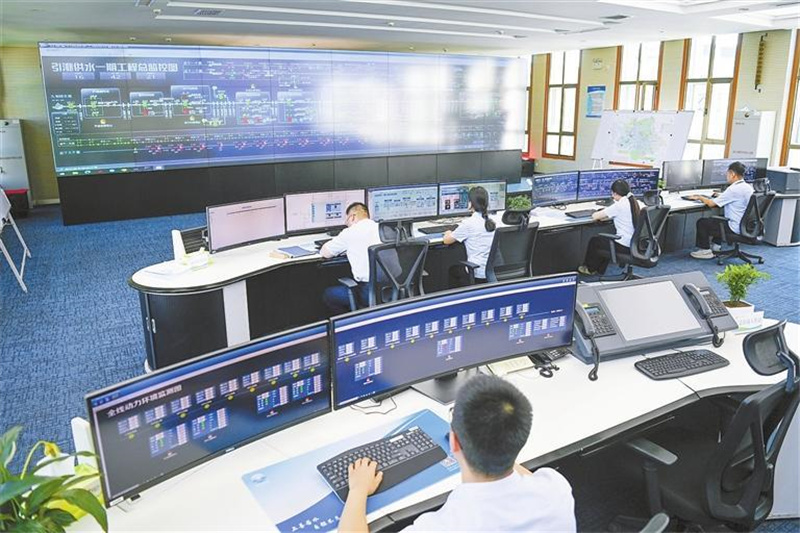 電子大屏上,數(shù)百公里管線化作跳動(dòng)的數(shù)據(jù)流,每一處閘站、每一段渠道都成為實(shí)時(shí)更新的數(shù)字坐標(biāo)。智能系統(tǒng)24小時(shí)監(jiān)測(cè)水位、流速、水質(zhì),如同不知疲倦的“水管家”,自動(dòng)預(yù)警異常、優(yōu)化配水方案,將“安全供水,供水安全”的要求,化為屏幕上每一個(gè)穩(wěn)定跳動(dòng)的信號(hào)。