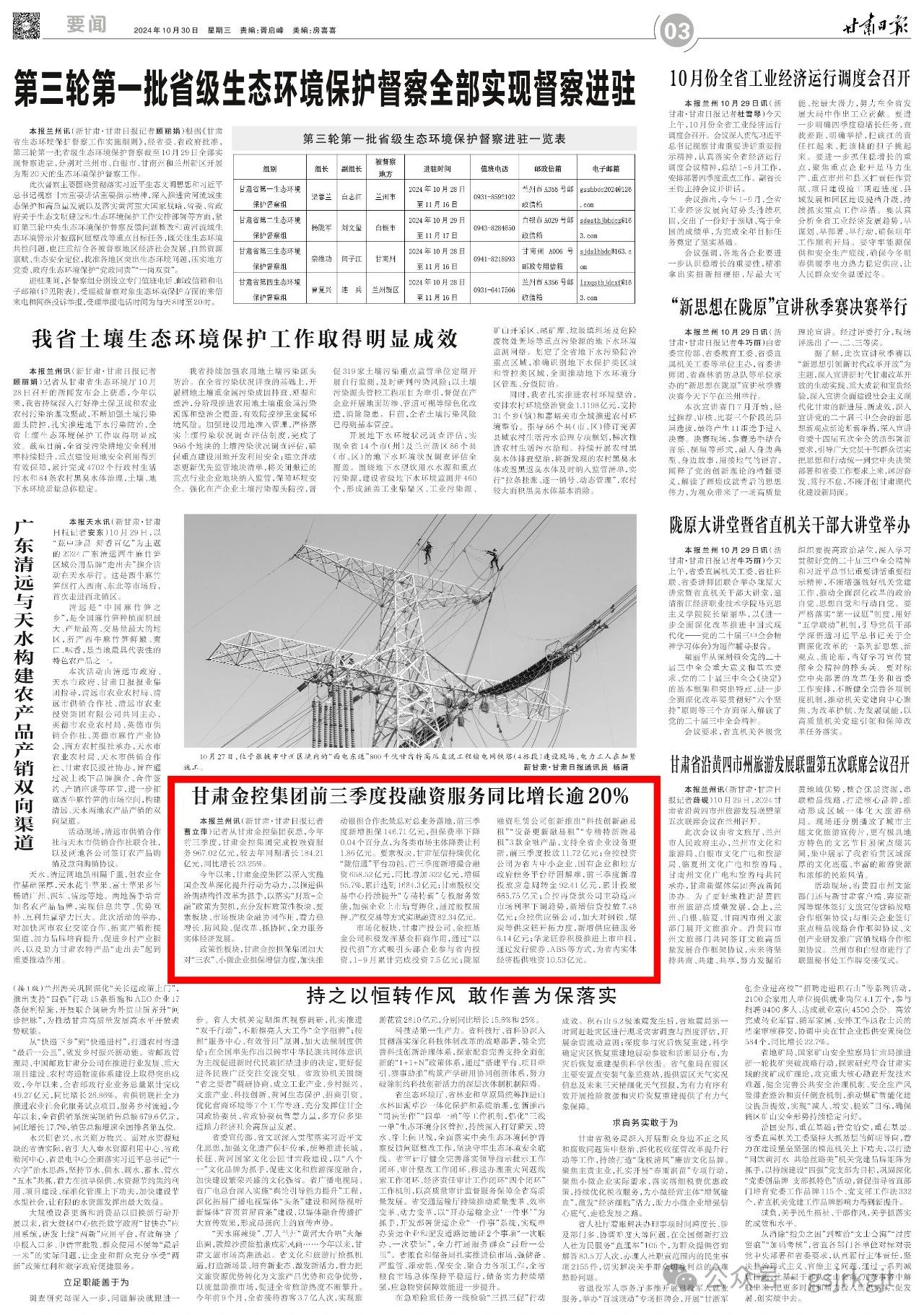 政策性板塊,甘肅金控擔保集團加大對“三農”、小微企業擔保增信力度,加快推動銀擔合作批量總對總業務落地,前三季度新增擔保146.71億元,擔保費率下降0.04個百分點,為各類市場主體降費讓利1.86億元。要素板塊,甘肅征信持續優化“隴信通”平臺功能,前三季度新增撮合融資658.52億元,同比增加322億元,增幅95.7%,累計達到1684.3億元;甘肅股權交易中心持續提升“專精特新”專板服務效能,加強企業上市培育孵化,通過股權質押、產權交易等方式實現融資82.34億元。