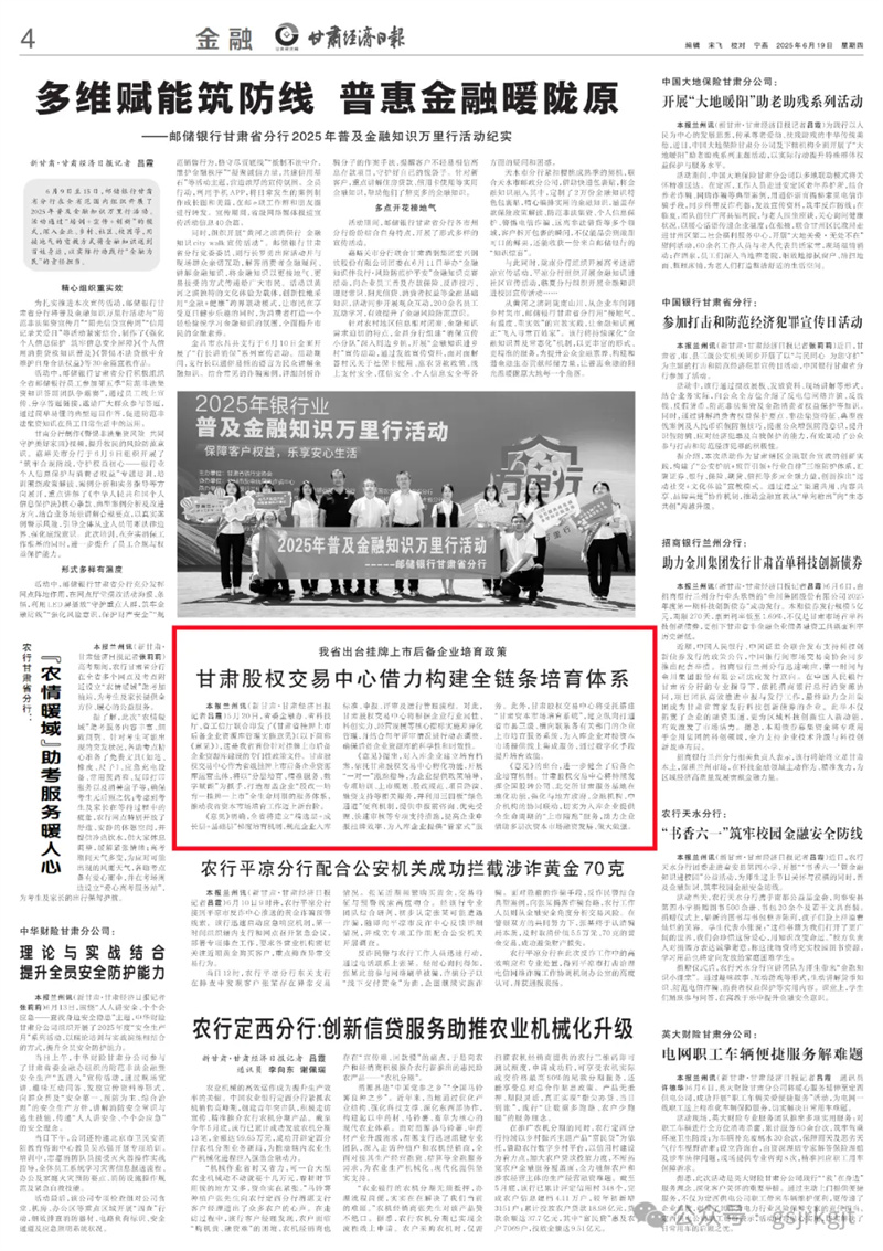 甘肅股權(quán)交易中心借力構(gòu)建全鏈條培育體系