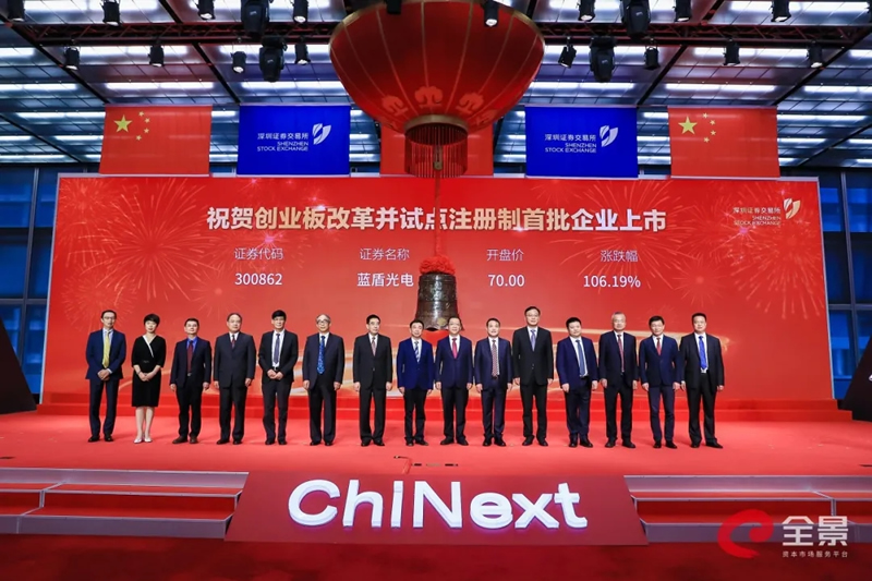 2020年8月24日,華龍證券保薦與主承銷的安徽藍盾光電子股份有限公司(股票代碼:300862,股票簡稱:藍盾光電)在深圳證券交易所創業板成功掛牌上市,成為注冊制下創業板首批18家掛牌企業之一。中共中央政治局委員、國務院副總理劉鶴發表書面致辭,中共中央政治局委員、廣東省委書記李希,中國證監會主席易會滿出席上市儀式并致辭,廣東省省長馬興瑞,深圳市委書記王偉中出席上市儀式。全國人大財經委、全國人大常委會法工委、最高人民法院、國家發改委、科技部、工信部、商務部、國資委等單位有關負責同志出席上市儀式。甘肅金控集團黨委書記、董事長,華龍證券黨委書記、董事長陳牧原作為藍盾光電保薦機構代表出席了掛牌儀式。藍盾光電子前身是成立于2001年的銅陵藍盾光電子有限公司,于2005年整體變更設立為股份有限公司,是國內智能交通行業領先的產品供應商和系統集成商。公司主營高端分析測量儀器制造、軟件開發、系統集成及工程、運維服務、數據服務和軍工雷達部件,產品和服務主要應用于環境監測、交通管理、氣象觀測和軍工雷達等領域??蛻糁饕獮槿珖h境監測、公安、交通、氣象等政府部門、企業及科研單位和部隊等。公司在光學、電子及信息技術、精密機械制造等領域積累了五十余年的科研和生產經驗,是我國儀器儀表行業內具有較強自主創新能力的成長型創新創業企業。藍盾光電子本次IPO公開發行股票3,297萬股,發行價格為33.95元/股,募集資金總額約為11.19億元。本次募集資金投資項目聚焦于公司近年增長速度較快的環境監測領域。募投項目的實施,將進一步提升公司研發實力、提升公司生態環境監測全產業鏈綜合服務能力、加快公司承擔的國家重大科研專項的產業化進程,有利于公司搶抓環境監測公共服務供給模式改變而帶來的市場機遇,鞏固公司環境監測運維市場行業地位。華龍證券投行團隊依據多年深耕資本市場積累沉淀下來的豐富經驗,通過深入調研和專業高效的盡職調查工作,為藍盾光電子量身打造了上市方案。從首次申報到歷次反饋、再到順利過會,華龍證券與藍盾光電子建立了互信共贏的伙伴關系,并助力藍盾光電子駛入資本快車道,借助資本市場的優質資源配置能力進一步快速、健康、可持續發展,做大做強!華龍證券北京分公司(投資銀行)已在北京、上海、深圳、杭州、蘭州、安徽等地區設立了業務分部,項目遍及全國。投資銀行團隊業務經驗豐富、職業操守良好、工作規范嚴謹、進取精神強烈。經過二十年的磨礪,華龍證券投資銀行業務取得了長足的發展:專業隊伍不斷壯大,專業技術和專業經驗不斷積累,專業化的服務水平不斷提高,在很多細分領域和細分行業華龍現已走到市場前沿,證券研發、營銷、創新等綜合實力不斷提升,公司已經具備大型股票、債券發行項目運作的實力和經驗,并和一批國際性企業龍頭建立了長期的戰略合作關系。華龍證券將始終秉承客戶價值最大化這一發展宗旨,致力于為客戶提供專業化、精準化、多元化的服務?!耙阅鸀楸?,成人達己”,華龍證券愿與您攜手同行,共創偉業。